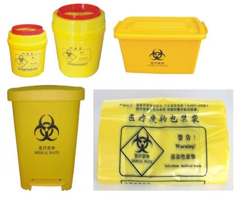 包装袋的颜色为黄色,并有盛装医疗废物类型的文字说明,如盛装感染性废物,应在包装袋上加注“感染性废物”字样;