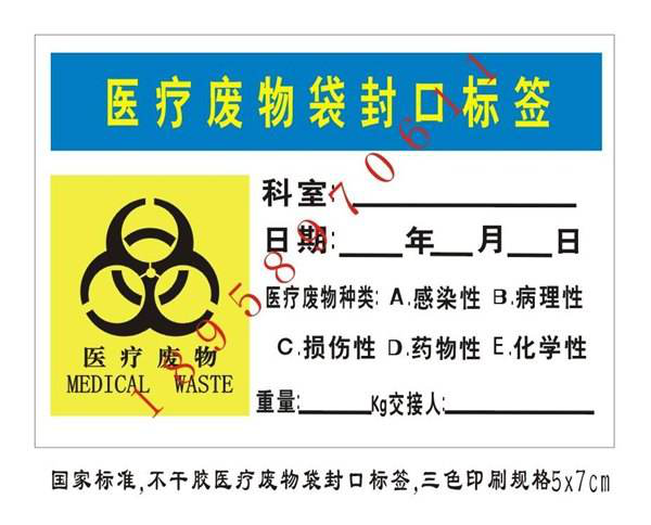 医疗废物封口标签:医疗废物产生日期、类别及需要的特别说明等。